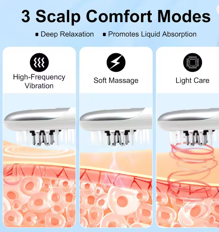High-frequency vibrations gently stimulate your scalp, enhancing absorption of serums and improving blood flow, all while creating a relaxing spa-like experience at home.